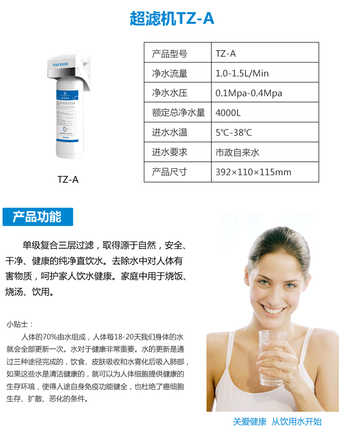 進(jìn)水溫度:5-38℃ 凈水水壓:0.1-0.4MPa